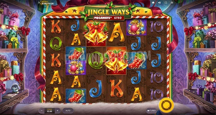 No entanto, não espere grandes ganhos, uma vez que o melhor símbolo paga 2,5x a aposta com seis símbolos alinhados. O ganho vem mesmo é do bônus do Jingle Ways Megaways e dos eventos aleatórios. Além desses símbolos comuns, o jogo também conta com um Scatter representado por um globo de neve que pode ser combinado em qualquer parte e ainda confere o bônus ao jogador.