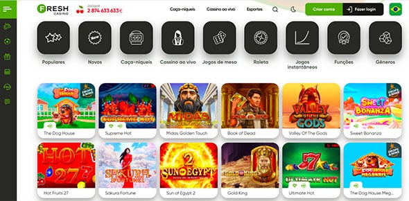 O Fresh Casino oferece infinitas opções de jogos de cassino, de cassino ao vivo e seção de apostas esportivas. Além disso, os jogadores podem jogar gratuitamente os games da casa antes de depositar e se divertir com dinheiro real. Saiba mais sobre as categorias de jogos do Fresh Casino a seguir!