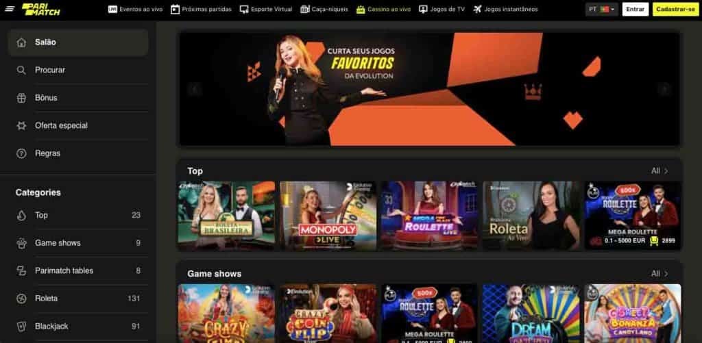 Parimatch Casino versão desktop