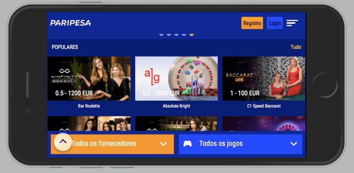 Na seção cassino ao vivo você interage com um crupiê de verdade. Além disso, você também pode competir contra pessoas em tempo real, graças às imagens em HD. O cassino ao vivo do Paripesa oferece todos os tipos de variações de roleta e blackjack, de empresas como Evolution Gaming, Ezugi, Pragmatic Play, etc. Além desses dois jogos, os apostadores podem escolher entre Bacará, Andar Bahar, Super Sic Bo, Poker, Monopólio ao Vivo, Mega Roda, etc.
